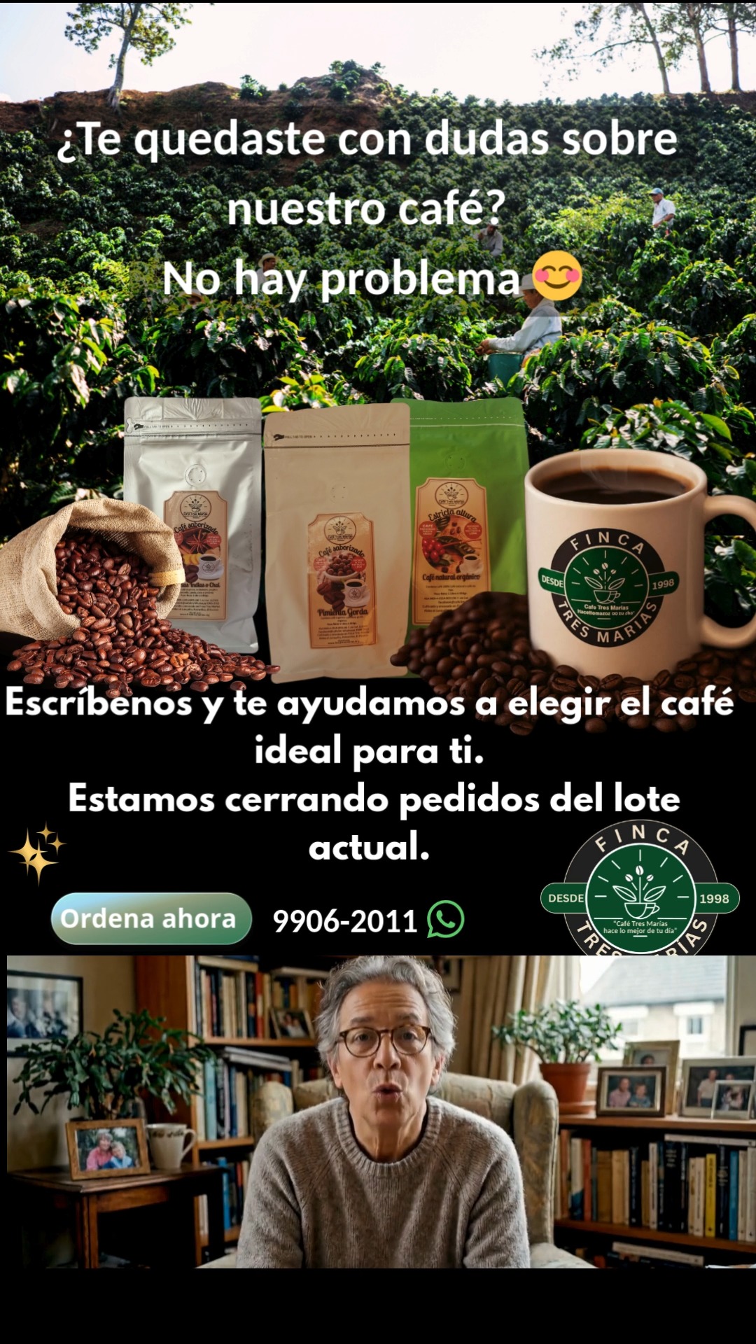 Finca Tres Marías es mucho más que una plantación de café. Desde 1998, nos dedicamos a producir, tostar y comercializar café de alta calidad. Cultivamos, cosechamos, tostamos y empacamos cada grano con esmero y pasión en nuestra finca. Nos enorgullece ofrecer a nuestros clientes la frescura, el sabor y la consistencia que solo un café artesanal puede brindar. Para nosotros, el café es más que una bebida, es parte de la vida diaria y de momentos especiales. Transmitimos valores de origen, familia, sostenibilidad y una profunda pasión por el café en cada taza que servimos.